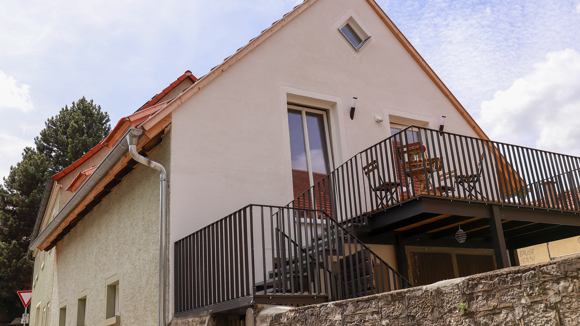 Unsere Ferienwohnung "Stübla" befindet sich im Obergeschoss und ist bequem über eine Treppe im Haupthaus erreichbar. Dabei ist unser "Stübla" nicht einfach eine Stube im herkömmlichen Sinn, sondern eine komplette Wohnung, inclusive Badezimmer mit Dusche, 2 Schlafräumen mit jeweils 2 Betten und rund 56m² Gesamtfläche. Mit einem großzügigen Ess- und Wohnbereich ist sie ideal für Paare mit und ohne Kinder sowie aktive Senioren.